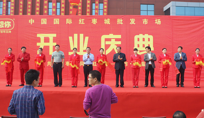 在開業(yè)慶典上,好想你董事長石聚彬詳述了好想你紅棗城批發(fā)市場的長遠發(fā)展規(guī)劃,紅棗城批發(fā)市場未來將與金融保險、電子商務(wù)、物流配送、市場營銷等現(xiàn)代服務(wù)業(yè)有機結(jié)合,充分發(fā)揮好想你在整個紅棗行業(yè)資源配置、信息集散、價格形成、引導(dǎo)生產(chǎn)等方面的作用。石聚彬表示,為發(fā)展紅棗產(chǎn)業(yè),增加棗農(nóng)收入,好想你紅棗城批發(fā)市場堅持“服務(wù)于民,讓利于商戶”的宗旨,采取零門檻、零租金、冷庫只收取成本費的運作模式,此項惠農(nóng)讓利近兩千萬元。