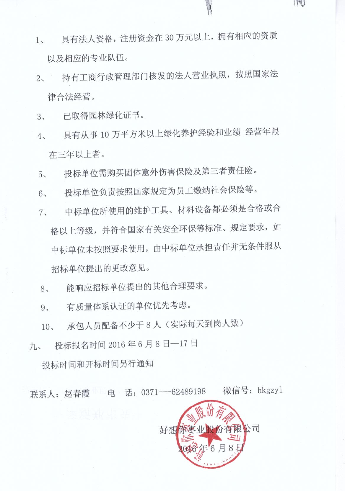 關于好想你棗業(yè)股份有限公司新廠區(qū)園區(qū)綠化養(yǎng)護招標