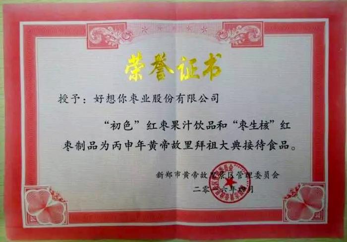 同時,好想你出品的“初色”紅棗果汁飲品和“棗生核”產品還被大典辦官方選定為“丙申年黃帝故里拜祖大典接待食品”。好想你棗業立足大健康產業,在產品品質上精益求精,“中國紅禮”的品牌定位也與拜祖大典高度契合?!坝煤孟肽慵t棗禮待四方賓客,可以讓海內外游子記住香甜的故鄉味道。”大典辦的相關負責人講道。
