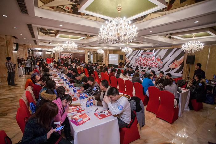 脫單派對預計3點半開始,而積極的男女嘉賓3點鐘就來到現場,簽到后在預先設定的位置上坐好。為了提升約會成功的概率,男女嘉賓們主動在小貼紙上寫上自己的信息貼在交友墻上,希望有緣的另一半能夠快點找到自己。等200位單身男女全部入場之后,為了活躍現場的氣氛,主持人邀請5對單身男女玩起了“瘋狂猜詞”游戲,考驗他們的默契度。
