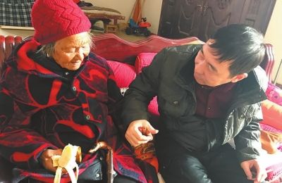 一下車,劉書顯急著往屋里看,90歲的老娘耳朵有點聾,她此前并不知道兒子今天要回去,猛一下看到兒子,親得拉住手不知說啥是好,劉書顯趕緊給母親剝個香蕉:“娘,你吃。”